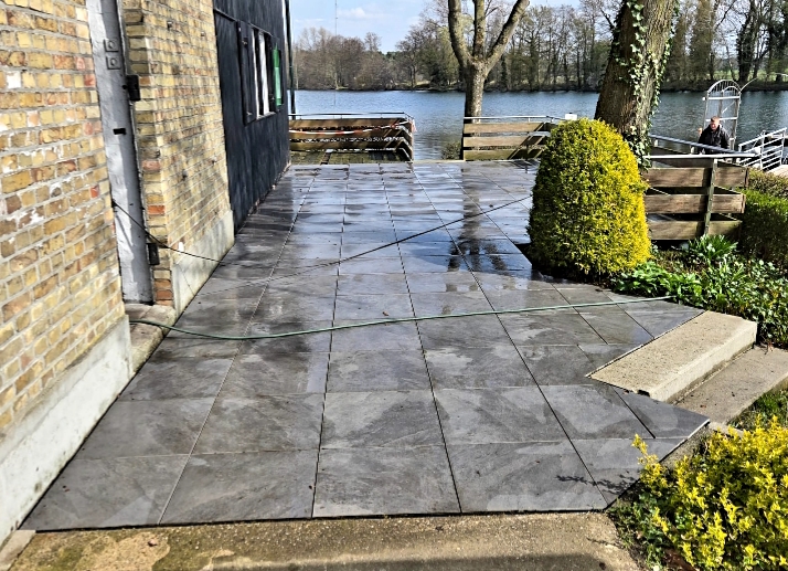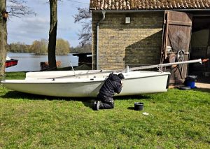 Steg und Terrasse wurden mit Hochdruckreiniger gesäubert. Auch die übrigen Boote werden zu Saisonbeginn klar gemacht.