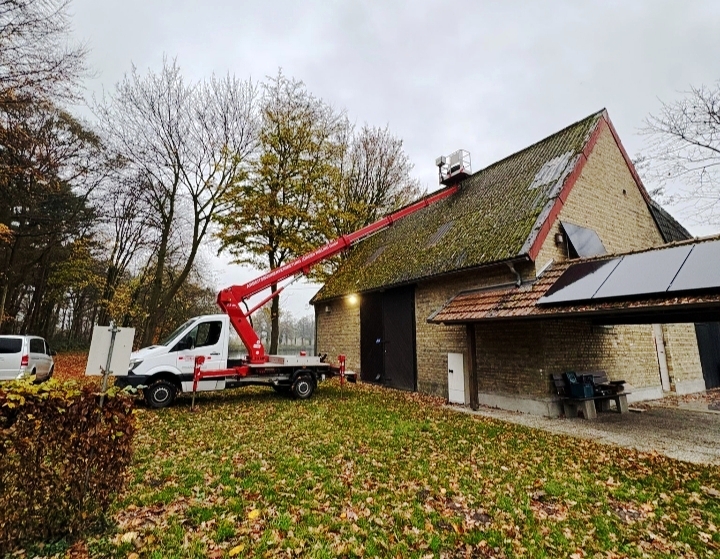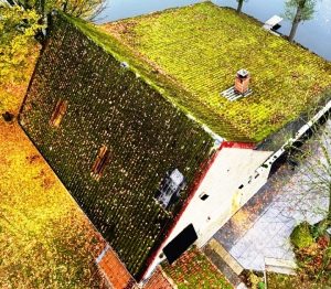 Bereits einige Tage zuvor hatte Steffen (Pfeil) das Dach auf Schäden untersucht. Sollten öffentliche Mittel tur Verfügung stehen, ist eine Erneuerung angedacht.