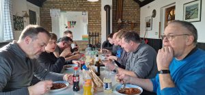 Der gesellige Aspekt durfte in der Segelsportgemeinschaft natürlich auch nicht zu kurz kommen. In der Kaffeepause gab es Brötchen und es wurde viel Seglerlatein gesponnen. Beim gemeinsamen Mittagsessen konnte die geleistete Arbeit bewertet werden.